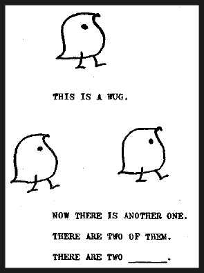 Wait, you may be asking, what’a wug? The short answer is that a wug’s not a thing. Literally. It was chosen as a good, possible English word that didn’t have a meaning associated with it. The long answer is that a wug’s one of the ways that we know phonology is real.